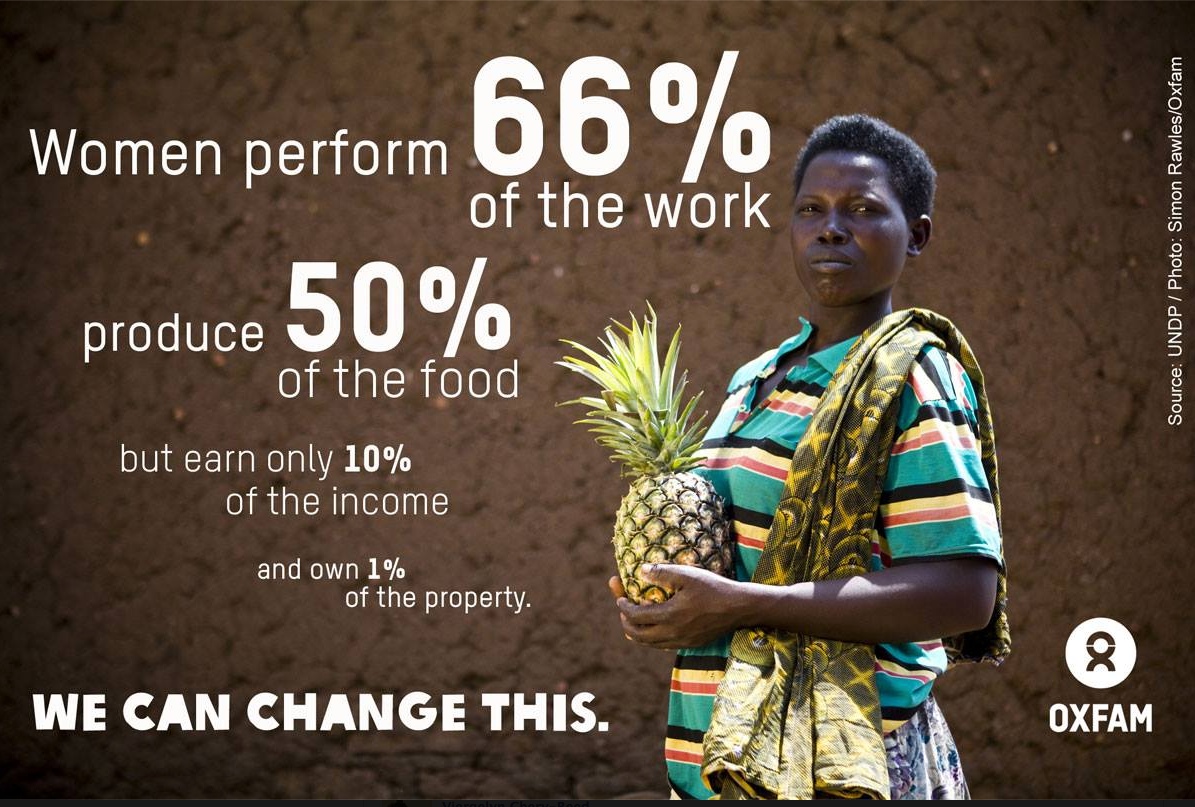 Even though women make up 50% of the world population, they don’t have an equal share of financial wealth or political power. Globally, women do 60% of the labor, but own less than 1% of the world’s property. That’s right–women in the U.S. included–women hold only 1% f the world’s wealth.