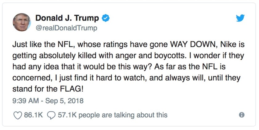 Previous Image Next Image Trump_suggests_that_Nike_s_stock_is_‘getting_absolutely_killed_with_anger_and_boycotts__-_MarketWatch